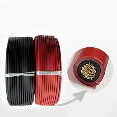 Os cabos fotovoltaicos (FV) solares são cabos elétricos especialmente projetados para uso em sistemas de energia fotovoltaica, como painéis solares, inversores solares e outros sistemas de energia fotovoltaica. Eles são projetados para transmitir e distribuir a eletricidade gerada a partir de sistemas de energia fotovoltaica com máxima eficiência e segurança, e fornecer desempenho elétrico superior. Nosso Cabo FV Solar é construído com condutor de cobre estanhado e isolamento XLPO, e pode suportar tensão de até 1500V. A bainha externa deste cabo está disponível em duas cores: preto e vermelho. Este cabo é usado em sistemas fotovoltaicos solares para geração de energia, e é uma escolha ideal para todas as aplicações de energia fotovoltaica.